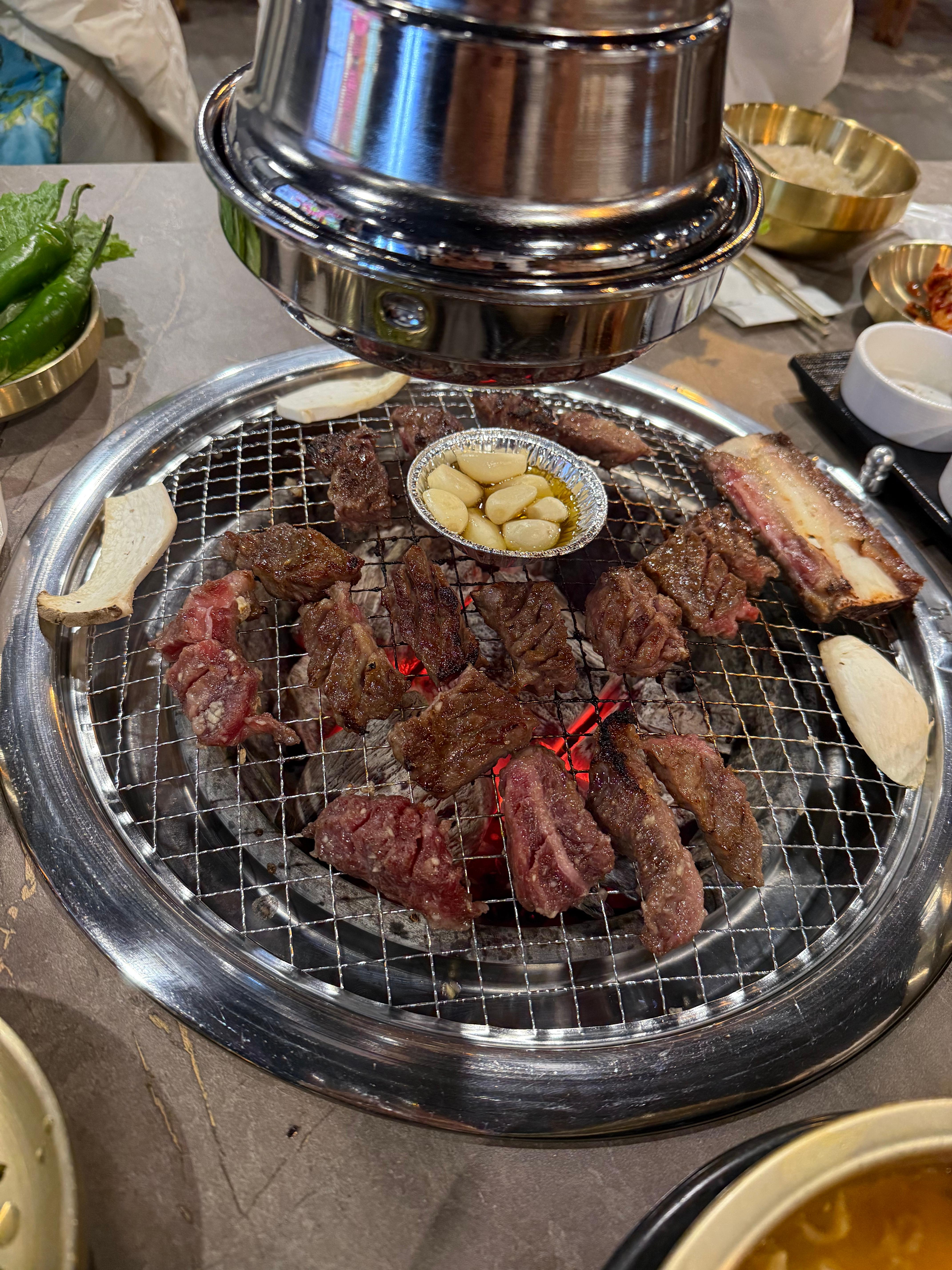 - Basic Banchan: We had perfectly ripened kimchi, refreshing Pajeori (spicy green onion salad), crunchy sukjunamul (bean sprout salad), and a surprising addition: sushi rice! It was a unique and interesting way to enjoy the galbi, like a mini meat-sushi.